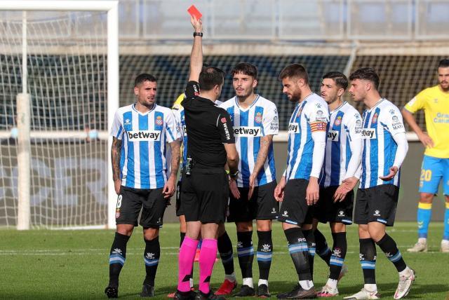 视频助理裁判巴隆年轻有为,32岁的他已多次执法西乙关键战,但今天他却成了争议的焦点。开场不久漏判巴雷的疑似手球后,巴隆便开始了“表演”。易边再战刚几分钟,刚向西班牙人后卫路易斯·洛佩斯出示黄牌的主裁判,听到耳机内的提醒来到场边,观看录像后改判红牌。但对方并未完全控制住皮球,故无“破坏明显进球机会”一说,录像显示西班牙人6号甚至先踢到了球,要说犯规也是此后用手触球,裁判报告中的“侵犯对手”简直一派胡言。