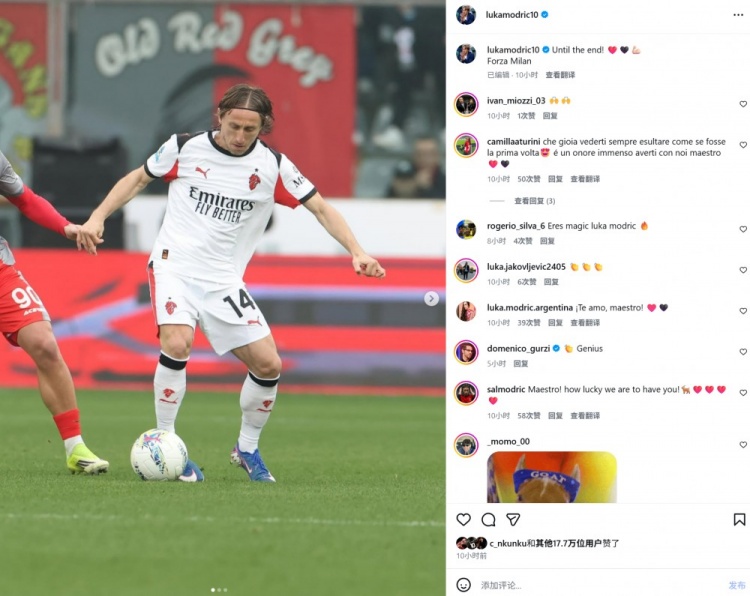 华体会运动频道-绝杀取胜,莫德里奇社媒晒照:我们坚持到最后一刻!米兰加油!
